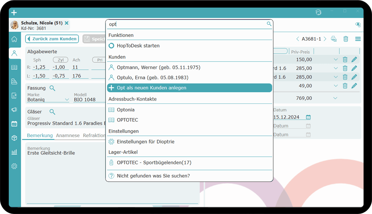 Mit OPA-KL einfach Weichlinsen verkaufen, aber auch komplexe Anpassvorgänge und Abos übersichtlich verwalten.